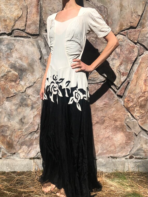 30s Nylon Applique And Tulle Black And White Party Dress Etsy