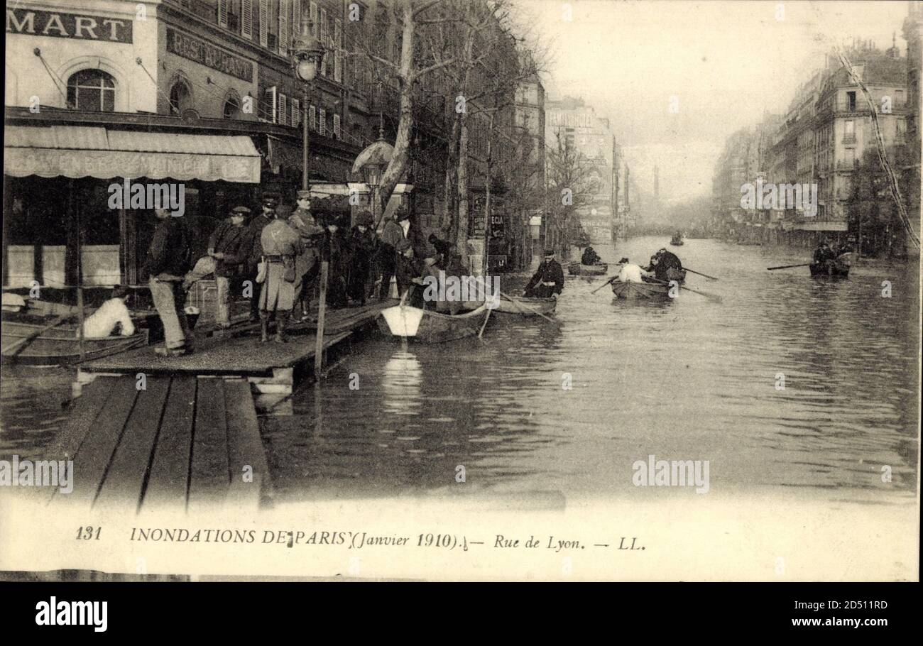 Paris Inondation 1910 Rue De Lyon Des Bateaux Usage Worldwide Stock Photo Alamy